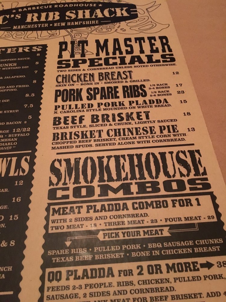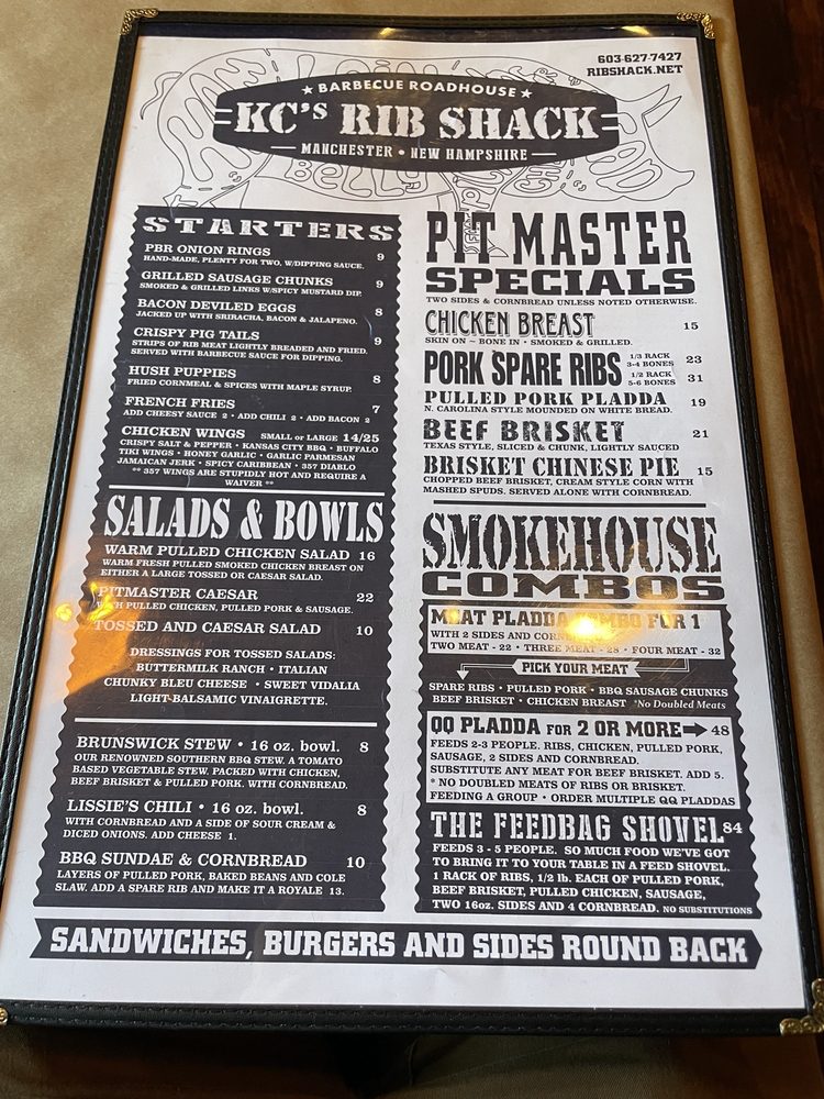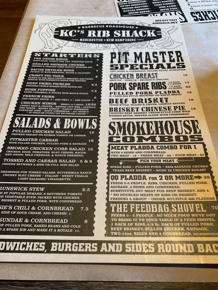 KC's Rib Shack Menu